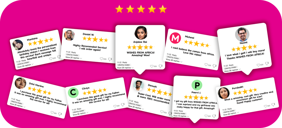 At Wishes from Africa, your satisfaction is our priority. We ensure a positive experience with our digital video gifts and are here to assist with any concerns. Enjoy seamless service!